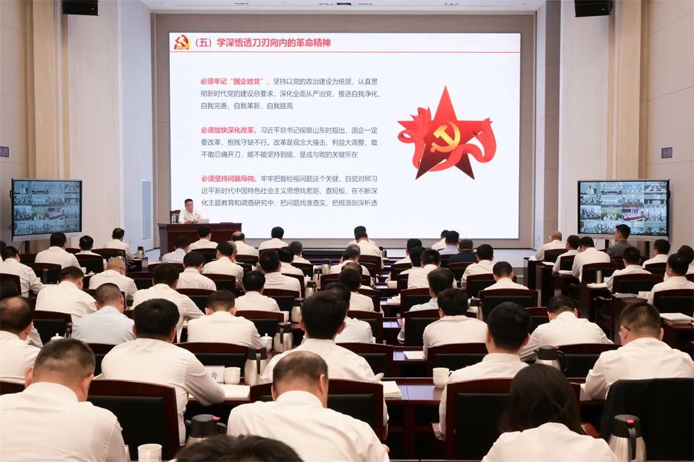 ▲山东能源集团党委主题教育读书班(第二专题)暨专题党课现场