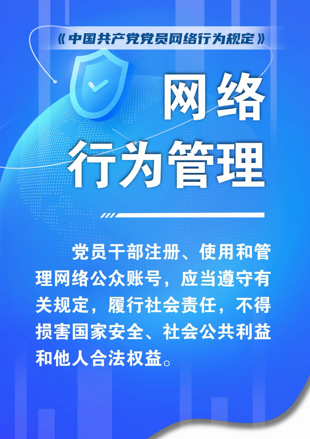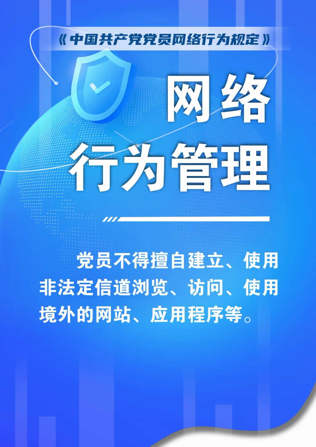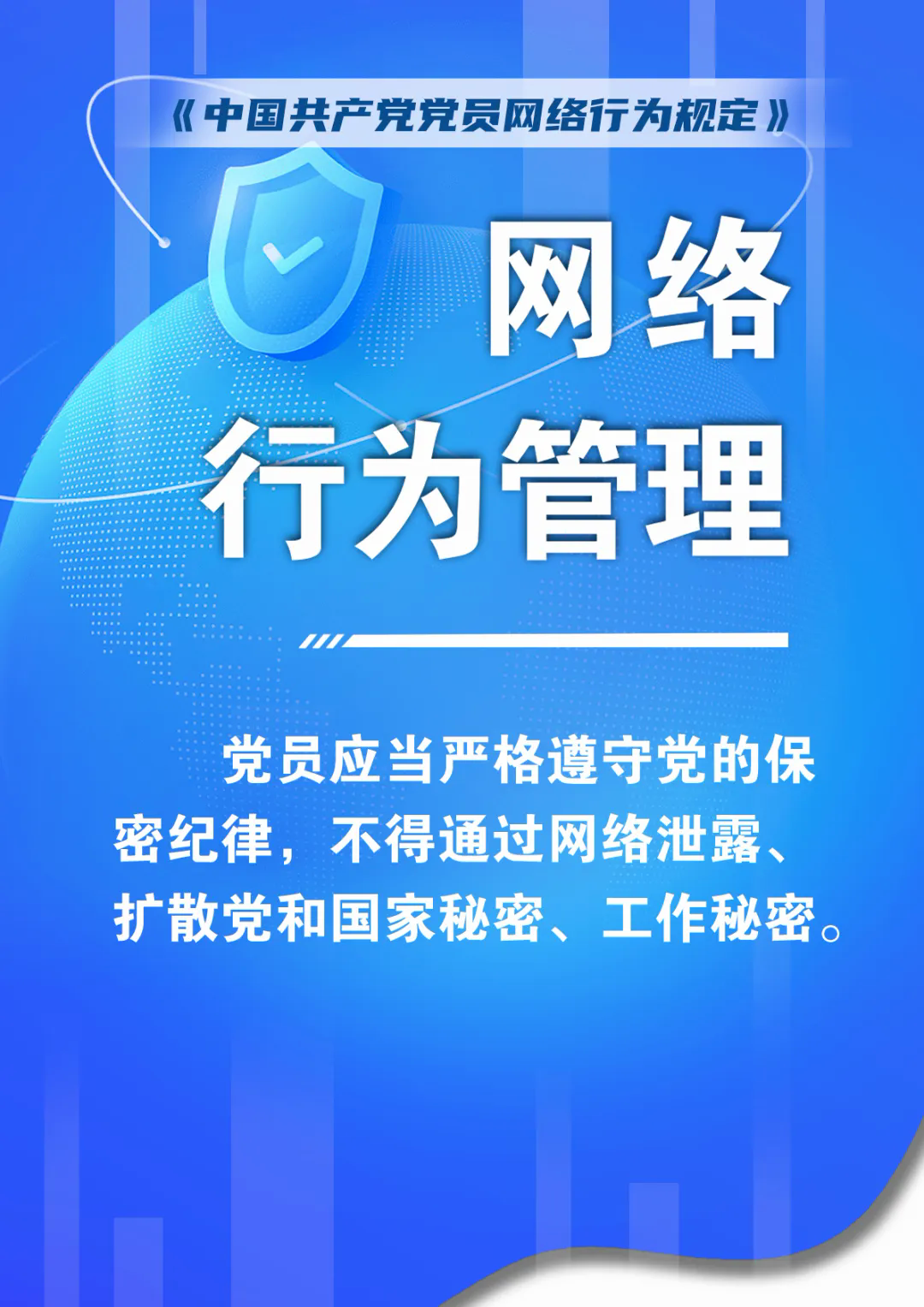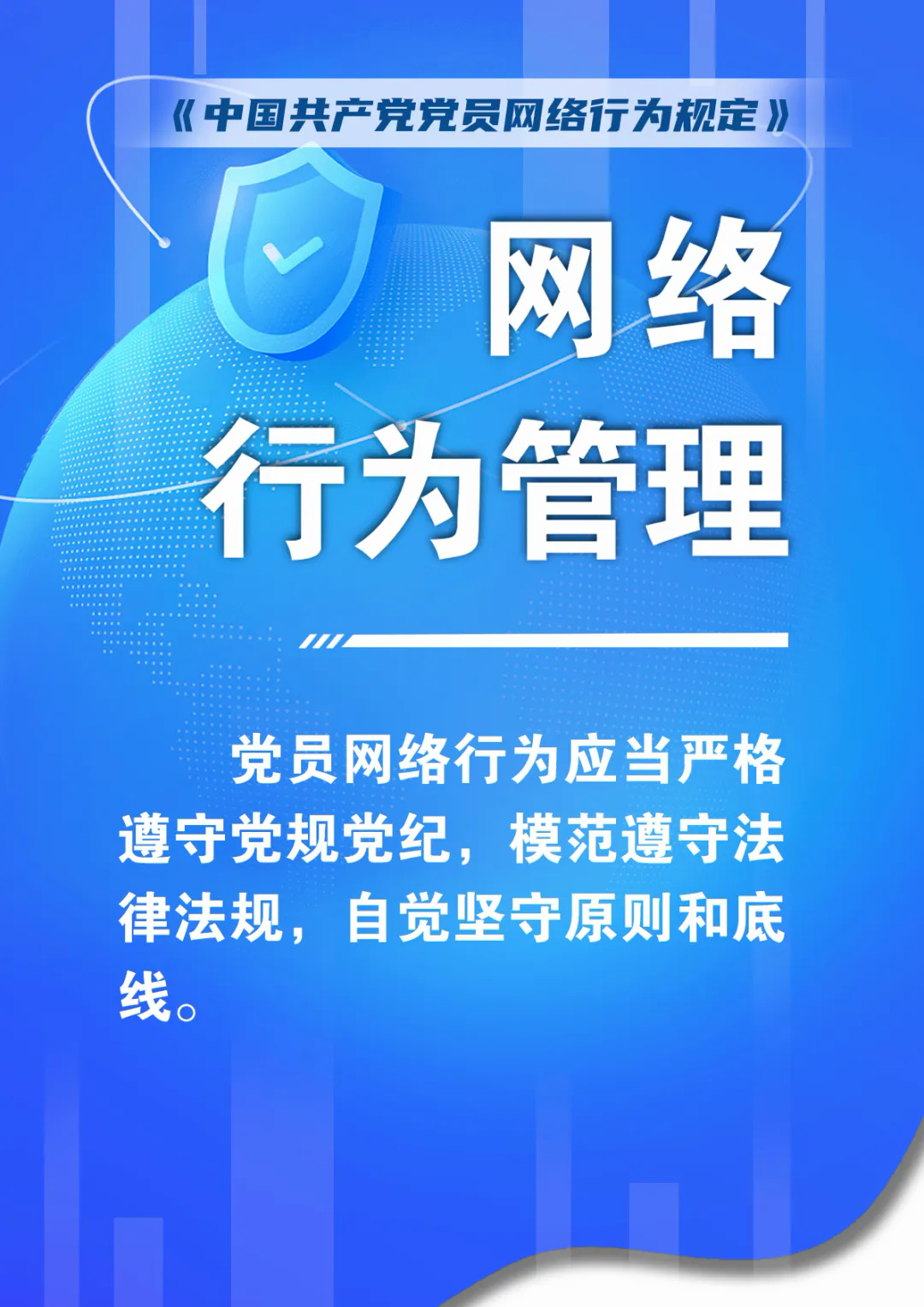 第九条 党员网络行为应当严格遵守党规党纪,模范遵守法律法规,自觉坚守原则和底线。