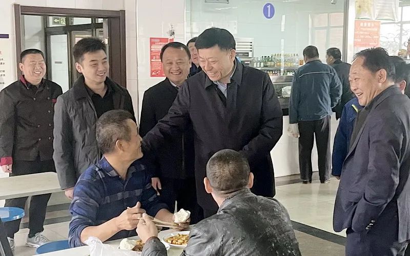 侯宇刚到职工餐厅询问了解职工生活情况,与职工亲切交谈,随后参观工业广场,了解矿井生产现状和职工队伍情况。