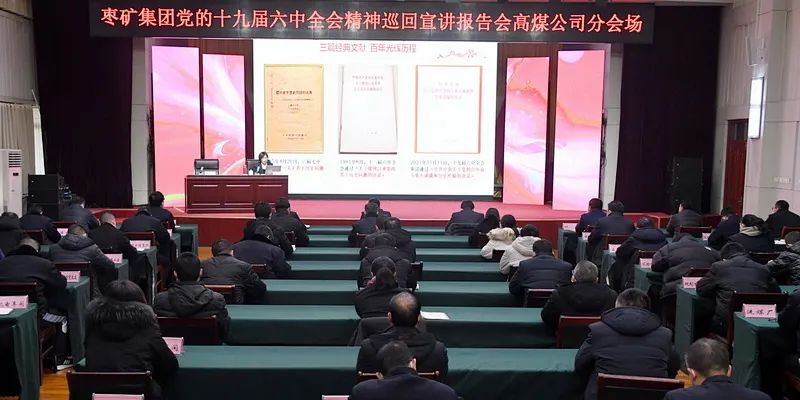 为全面深入学习领会党的十九届六中全会精神,12月29日,枣矿集团党委党的十九届六中全会精神巡回宣讲团分四个组,在集团公司宣传部、党校负责人带领下,分赴柴里煤矿、付村煤业公司、蒋庄煤矿、七五煤业公司、高庄煤业公司进行宣讲,各单位部分干部职工代表现场聆听了宣讲报告。