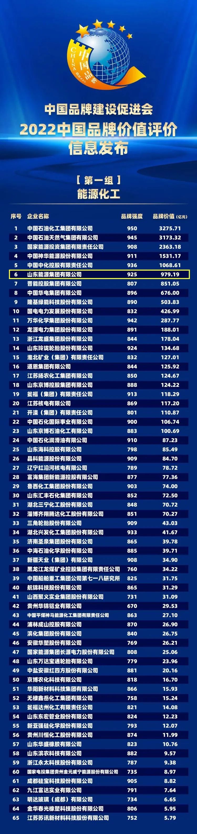 品牌价值979亿!山东能源集团荣登2022中国品牌价值评价榜单