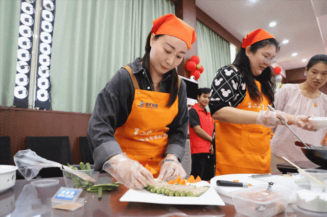 比赛中,“大厨”们从洗菜切菜开始,对菜品进行“精雕细琢”。炸、煎、蒸、炒、煮,出锅、摆盘……一整套动作行云流水,既展示了高超技艺,也在“炫耀”着幸福生活。