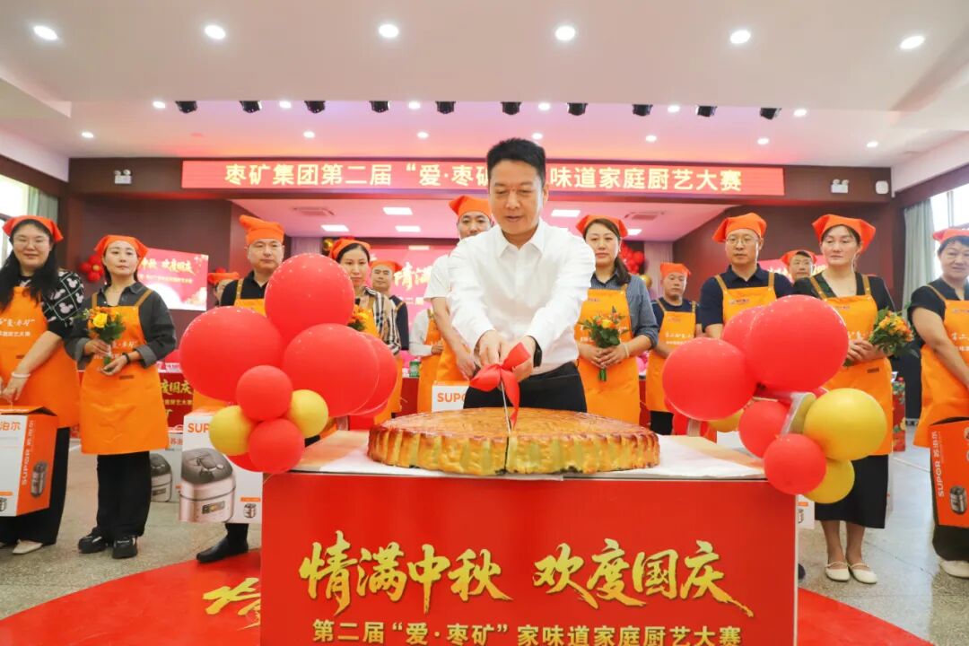活动最后,特制月饼被缓缓推上舞台中央,枣矿集团党委副书记、工会主席周东云将这份象征团圆的大月饼均匀切分成小块,送到每位参赛选手、亲友团和现场观众手中。