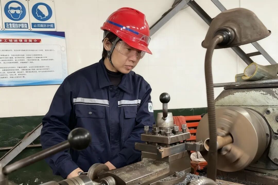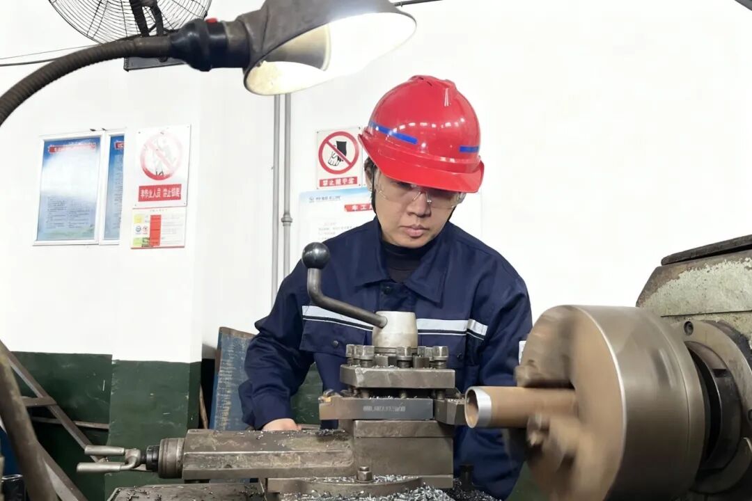 “刚开始确实很不适应。”孙珊坦言,“车床操作要求极高的精准度,稍有不慎就会造成工件报废。”面对陌生领域,她没有退缩。白天跟着师傅认备件、练把控,夜晚独自在车间反复练习,那双曾经握着粉笔、拿着话筒的手,如今在机油和铁屑中磨出了茧子,却也练就了过硬的本领。