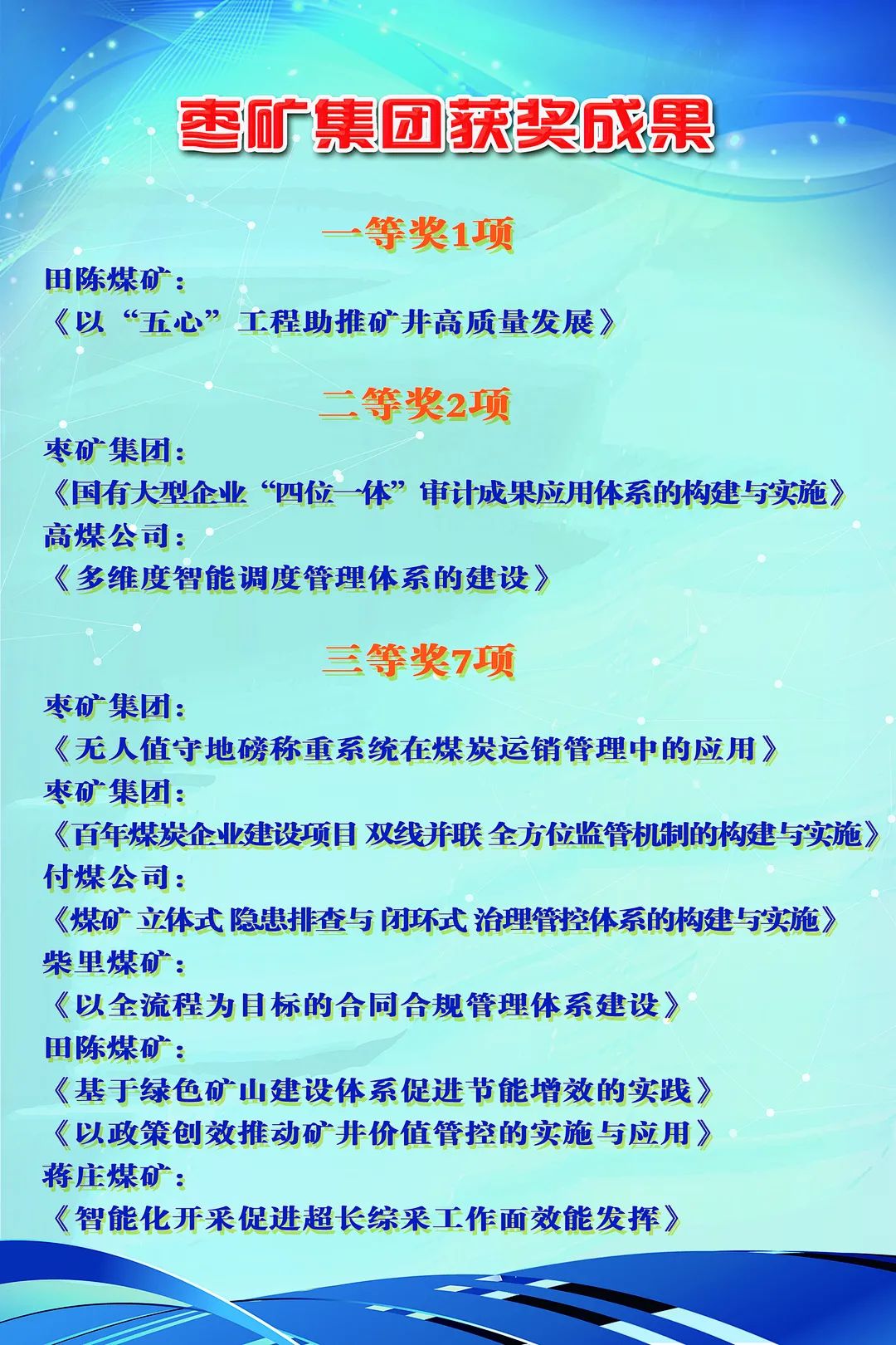 近日,第35届山东省企业管理现代化创新成果名单揭晓,枣矿集团有10项成果获奖。