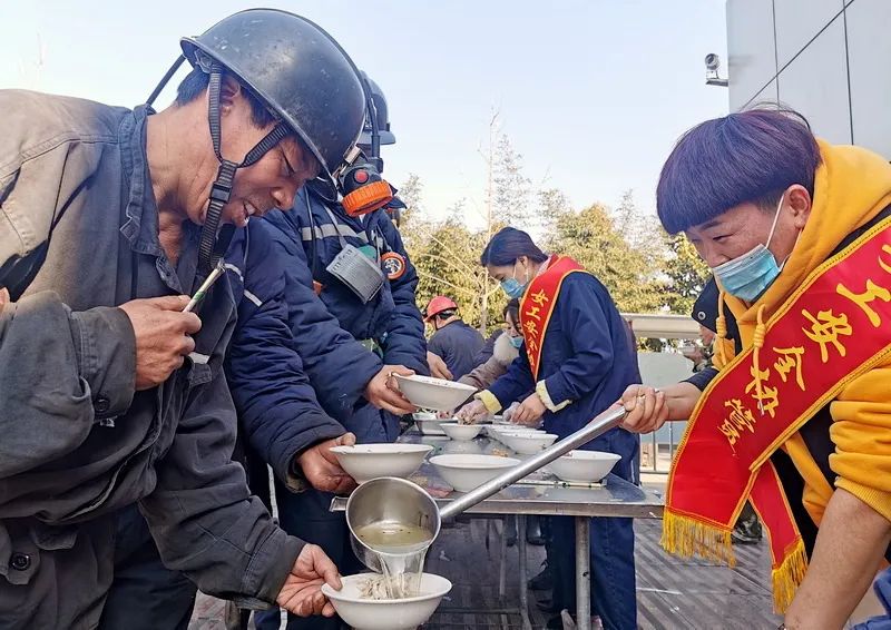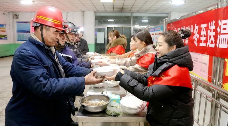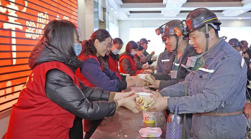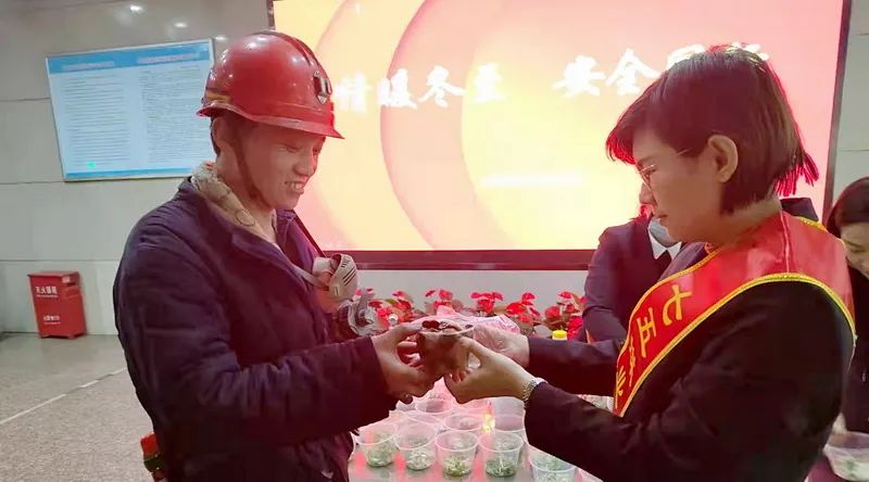 东于煤矿组织女工协管员、青年志愿者们在井口大厅开展了“冬至送温暖 真情嘱平安”活动,为上下井的职工师傅们送去了热腾腾的鸡汤、酥油饼,让这个冬天充满家的味道。