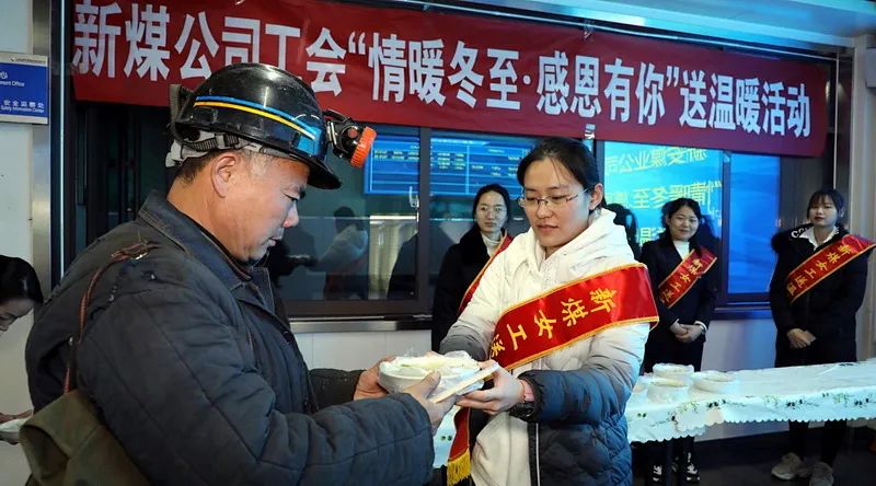 “师傅,冬至到了,快来喝碗鸡汤....”在新煤公司安全文化走廊,女工协管员将一碗碗热腾腾的鸡汤和一碗碗水饺端到职工手中,并嘱咐他们一定要时刻牢记安全、打好决胜攻坚战。热腾腾的水饺、平安的期盼连同决胜年终的信念让一线职工备受鼓舞。