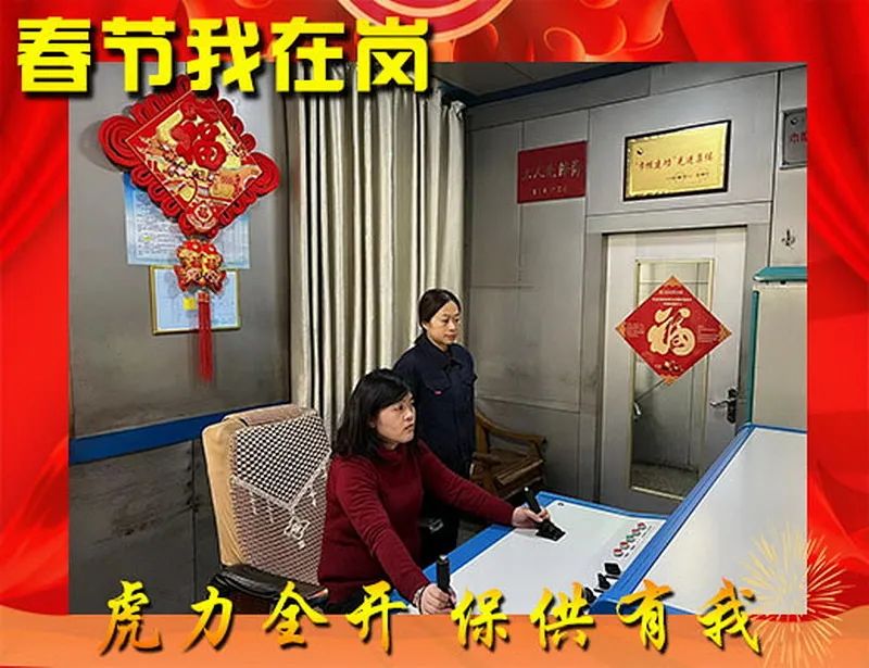 万家团圆时,付煤公司机电运转工区副井绞车司机徐娟、刘文娜选择留守岗位,保证矿井提升系统安全运行和机电设备正常运转。(郜勇、高原)
