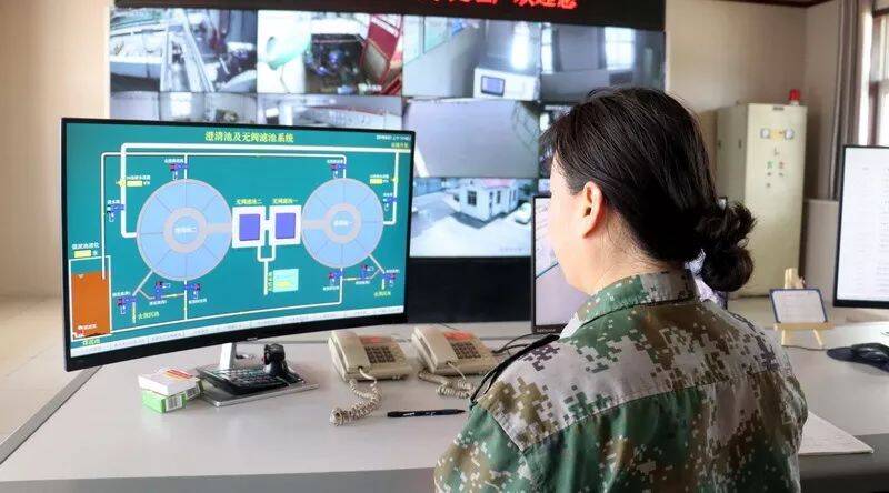 走进该矿选煤厂水处理车间,只见两个沉淀池、两个澄清池占居大院中央,一侧是乌黑混浊的煤泥水,一侧是清澈见底的清水。针对原有设备处理能力低、矿井水悬浮物含量不稳定处理难度大等问题,该矿将所有阀门升级为电动阀门,对加药系统更新换代,升级后的加药系统可通过预设的自动化工艺流程比对分析,自动根据矿井水浓度的高低和处理量的大小配备一定比例的药液剂量,一改过去开关阀门、更改供水管路、调配加药都要靠人工操作状态,降低了职工劳动强度,提高了工作效率。同时,该系统可根据监测到的信号准确判断提升泵、搅拌机、电动阀门等十余种设备的工作情况。出现故障及时发出报警信号,并根据故障类型停机,大大降低了安全风险,提高了污水深度处理能力和循环利用率。