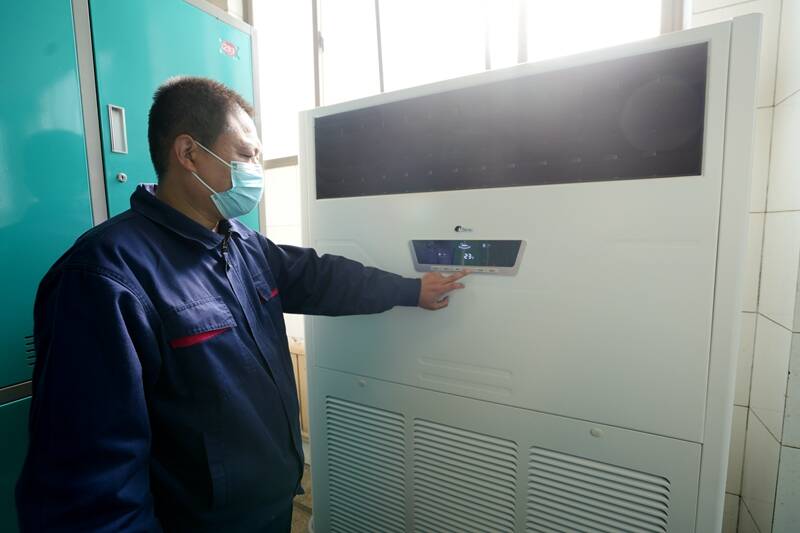 “这大功率空调让室温始终在26度以上,来冷空气也不怕了,洗澡换衣服也不愁了。”该公司巷修工区职工郭雨飞说。他们超前预判,加快购置计划审批流程,洽谈合同与办理手续同步进行。多方协调供货渠道,缩短供货周期,在确保防疫安全的情况下,提前打通了空调、热风机设备和安装人员进矿通道,11月15日,该公司购置的16台大功率空调就已到矿,并安装在了职工更衣室、食堂,10台热风机也同步安装在井口工作区域,确保了职工更衣、就餐和井口供暖。