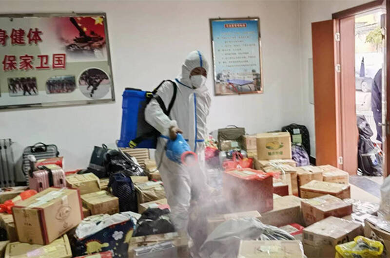 (护卫队员对所有的物资进行集中消杀)