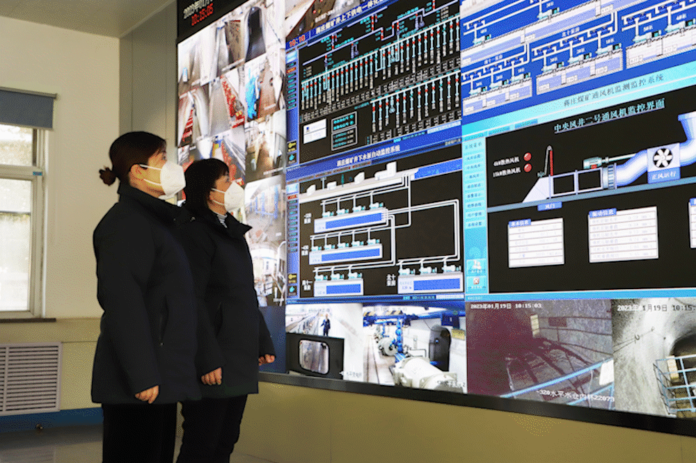 这边,甘宜凤和褚媛媛对48台高压开关柜、9台低压开关柜、2台无功补偿装置进行逐一点检,并认真填写点检记录。那边,韩翠玉实时监测井下4个泵房15台水泵的水位,根据水位情况及时开泵或停泵。
