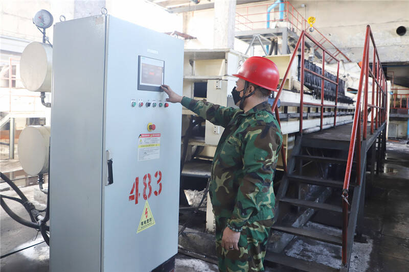 (工作人员巡查压滤机运行状态)
