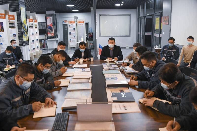 (技术骨干商讨解决现场难题)