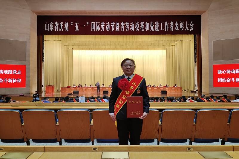(徐青在济南领受“山东省劳动模范”荣誉)
