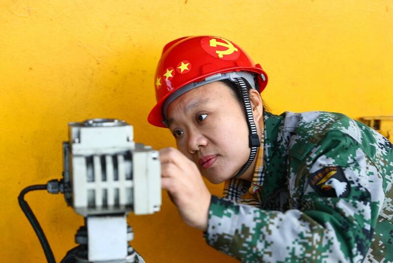她自2001年参加工作以来,就一直在选煤厂工作,当年的她敢拼敢闯敢干,凭着年轻和不服输的劲头,竞聘成为一名洗煤司机,也是枣矿集团第一批“女洗煤司机”。在当时,洗煤司机岗位是非常艰苦的,跳汰洗煤工艺不仅要面对每班次不间断巡查、高分贝噪音的工作环境,更需要在工艺复杂、设备稳定性差、紧急情况频发的工作中,尽快掌握处理方法,只有这样,才能保障洗煤质量。