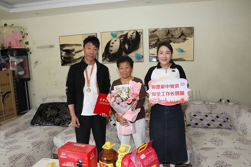 “感谢您这么多年的辛勤付出,妈妈节日快乐,我爱您!”在综合工区安全标兵陈琳家中,年迈母亲接过儿子送给她的鲜花,脸上荡漾着幸福的笑容,眼里流出高兴的泪水,与儿子紧紧相拥时,嘴里不停地念叨“一定要好好工作,时刻注意安全!”