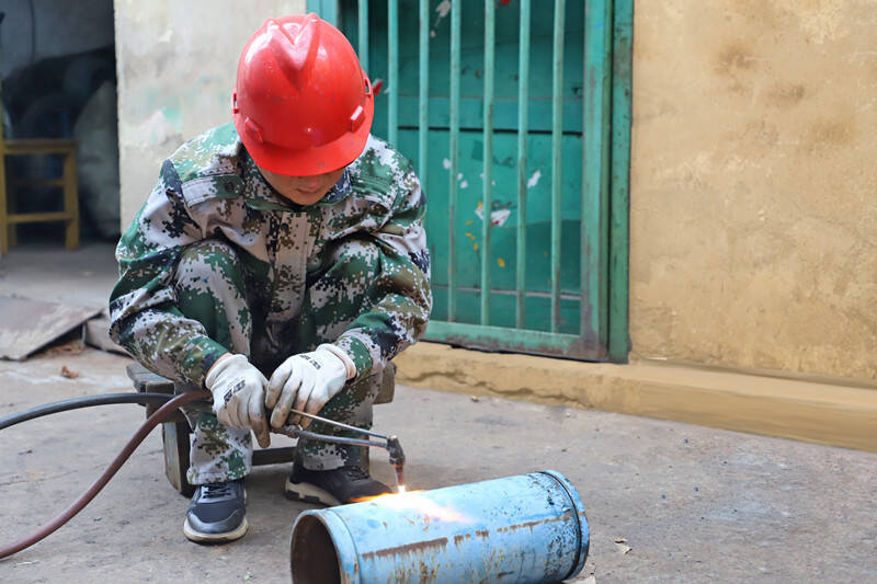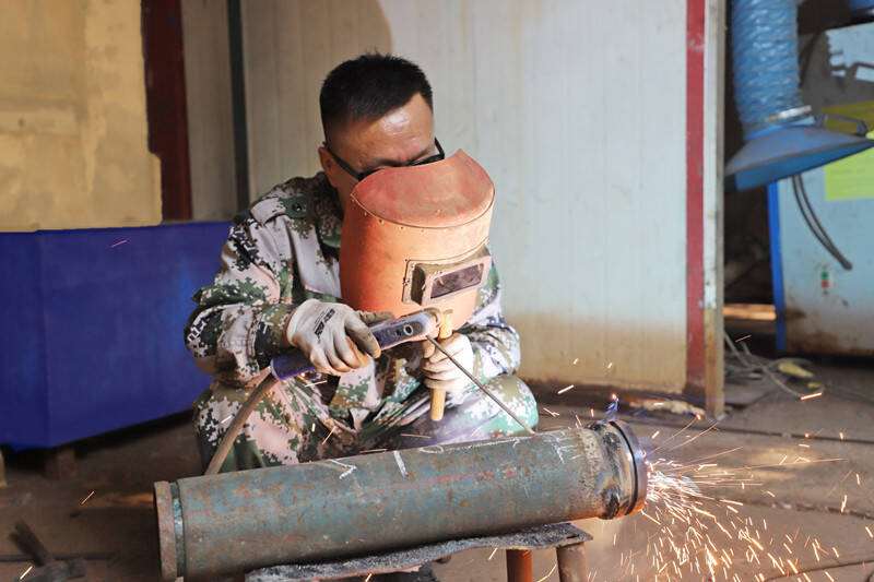 (通防科职工正在焊接4寸短接)