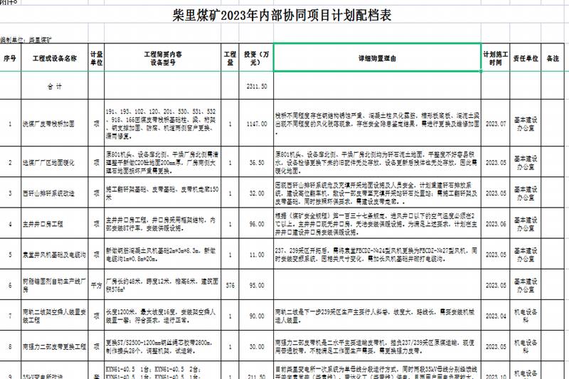 规划发展科根据集团公司批复的专项资金计划,按照项目类别、施工时间节点、责任单位、可协同单位等梳理编制专项资金协同项目计划统计表……