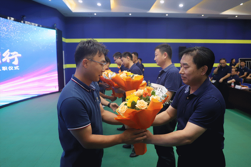 仪式上,新入职大学生员工们收到了被分配轮岗单位负责人送上的鲜花,并与导师签订了师徒协议。
