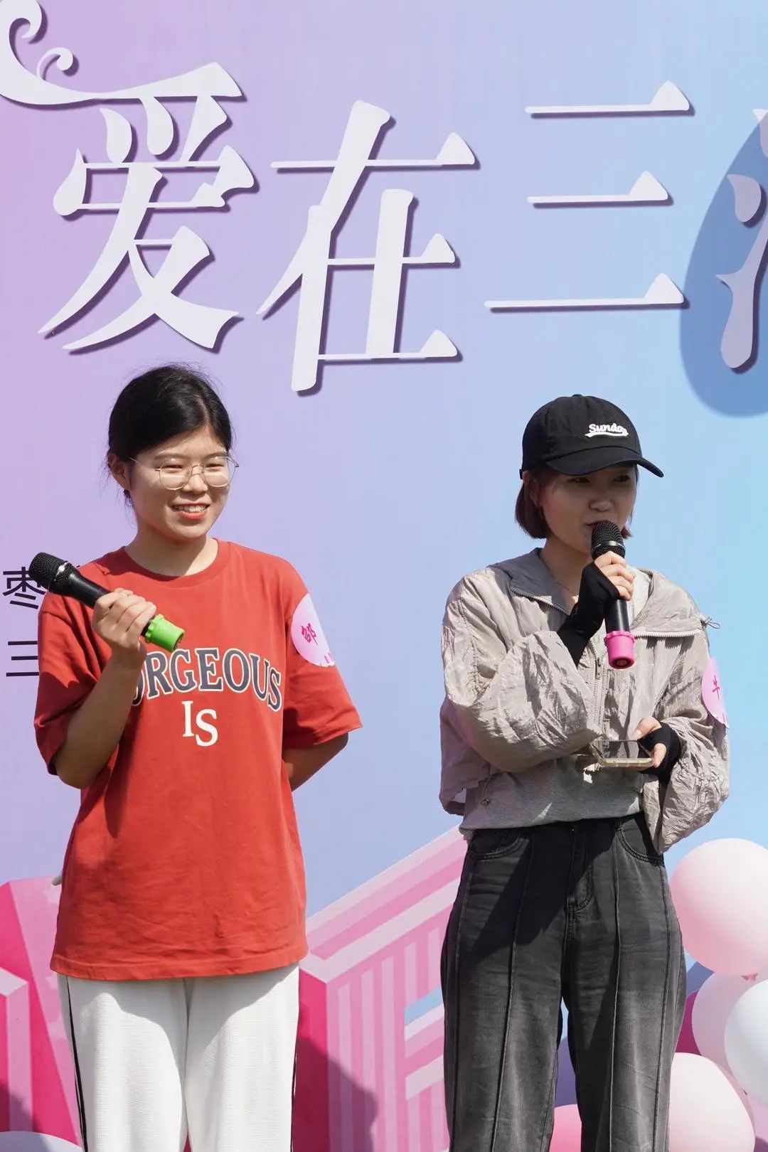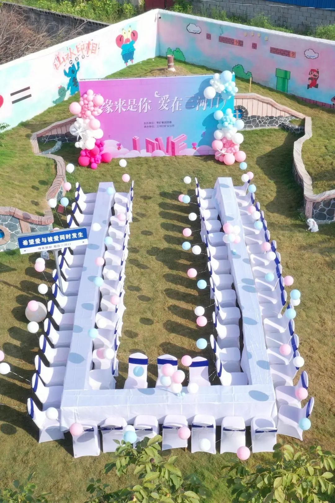在气球和鲜花的装点下