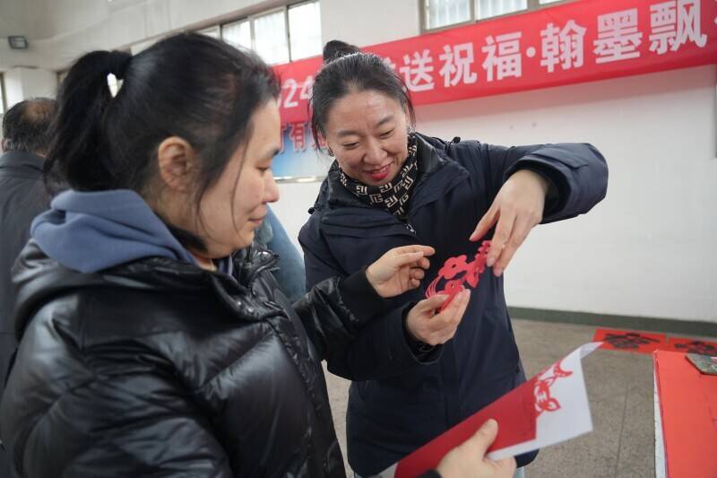 “老师,能按这个给我写吗?”“给我写一幅一帆风顺,祈愿2024年顺顺利利。”“能给我剪一个新年快乐吗?”……对于现场职工的“私人订制”,书法和剪纸爱好者们都是有求必应。
