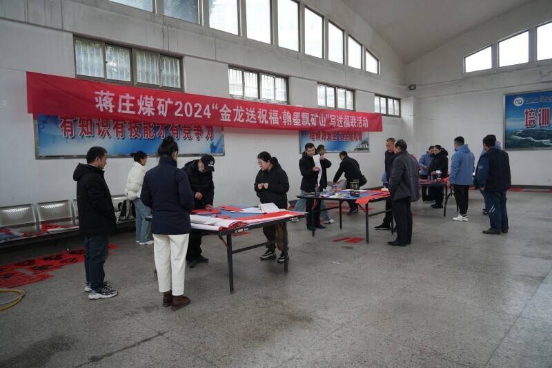 新春将至,为弘扬中华优秀传统文化,营造喜庆、欢乐、祥和的节日气氛,1月30日上午,枣矿集团蒋庄煤矿工会开展“金龙送祝福·翰墨飘矿山”写送福联活动,该矿书法绘画协会的书法爱好者、青年志愿者、安全宣教轻骑兵队员齐聚蒋庄煤矿实训基地,以写春联、送祝福的方式,为全矿干部职工送祝福,共同感受笔尖上的年味儿。