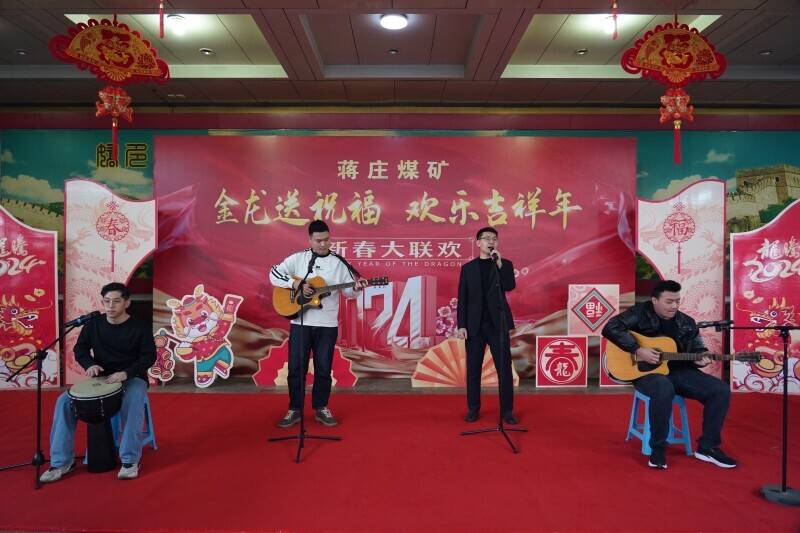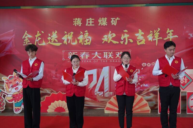 “2024年,龙行龘龘;我矿生产新格局已全面铺就;赓续百年新枣矿,蓄势起航新征程……”诗朗诵《蒋矿 正年轻》或娓娓到来,回顾发展历程,或激情高亢,展望美好未来,表达了“蒋庄人”坚定信心、勇毅前行的决心。