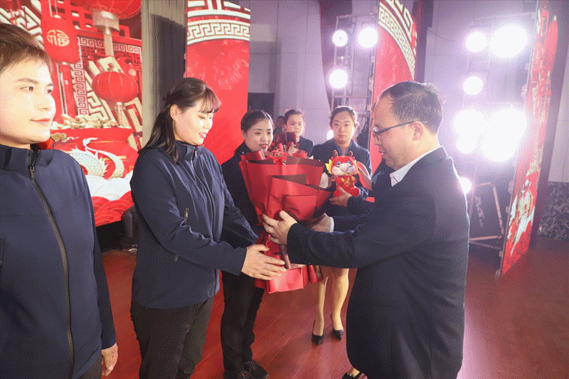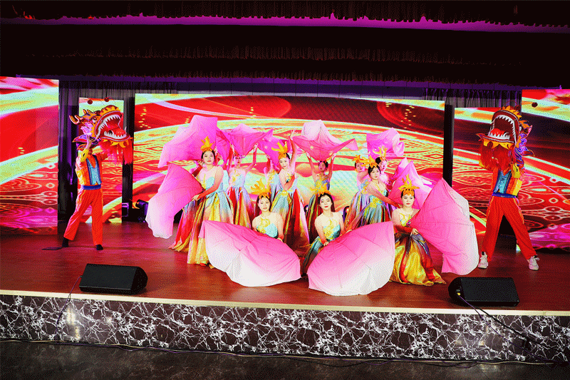 演出在欢快轻盈的舞蹈《龙腾虎跃闹新春》中拉开了帷幕,鼓点铿锵、歌声悠扬、舞姿曼妙,表达了广大干部职工辞旧迎新、共享发展成果的喜悦,一开场就点燃了大家的热情。歌伴舞《写故事的人》、诗朗诵《荣耀,属于田陈》把职工的心声,把对企业的爱恋,把对矢志前行的誓言,化作悠扬旋律,变成铿锵舞姿,歌颂企业,歌颂劳动者,歌颂每一个书写绿色低碳高质量发展故事的奋斗者。