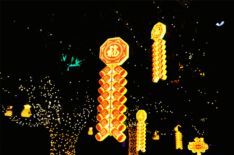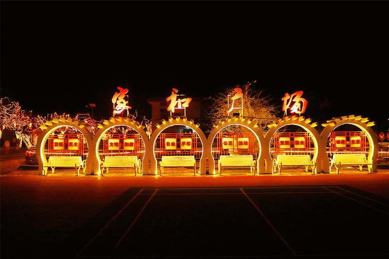 五彩斑斓的颜色让矿区内呈现出一派欢乐祥和的节日氛围,道路两边五颜六色的霓虹灯与火红的灯笼相互辉映,璀璨夺目甚是好看。