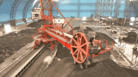 臂式斗轮堆取料机作业