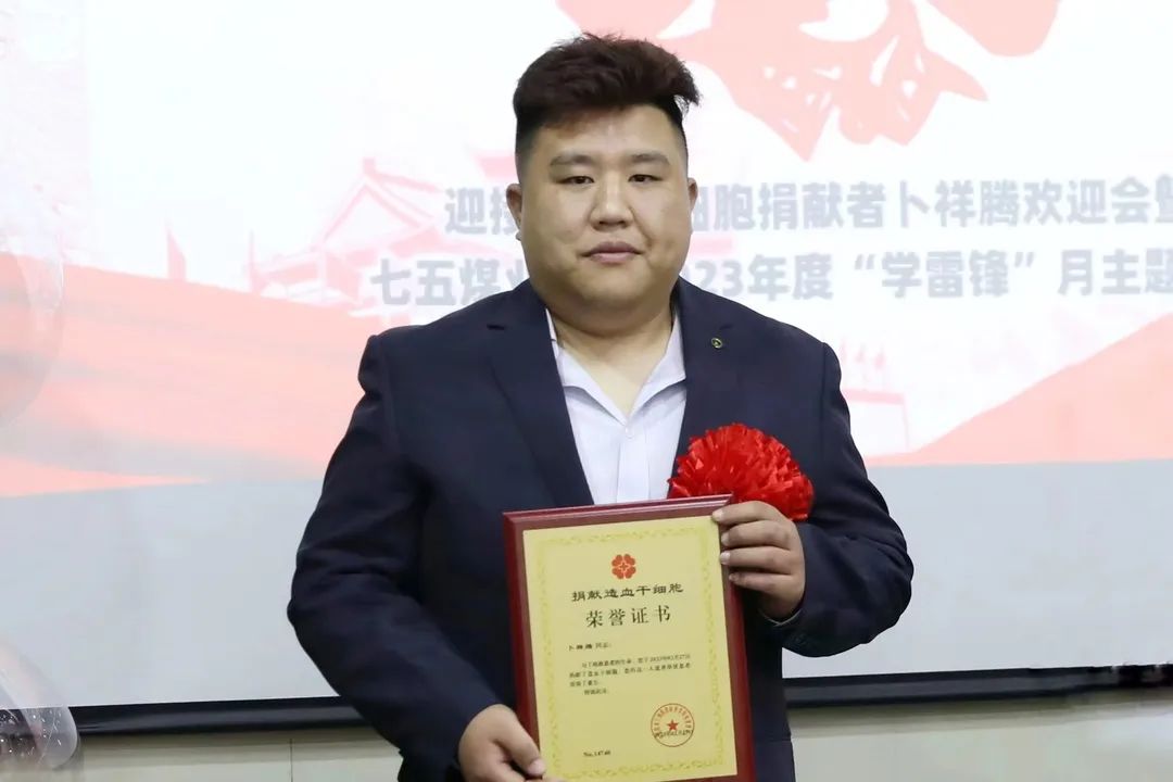 卜祥腾是七五煤业公司综合车间一名职工,2023年2月份,他赴济南山东大学齐鲁医院进行造血干细胞采集捐献,为一位白血病患者捐献造血干细胞,使患者重获新生。卜祥腾是枣庄市第60例造血干细胞捐献者,也是枣矿集团第7例、七五煤业公司第2例造血干细胞捐献者,他以奉献社会的高尚情操和献身公益的社会责任,用爱心和行动重燃血液病患者的生命之光,弘扬了关爱他人、乐善好施的传统美德。