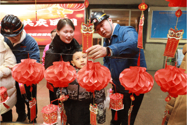 吃元宵、猜灯谜、做灯笼、签公约……元宵节即将来临之际,柴里煤矿邀请部分一线职工及家属,开展“人安家暖、共庆团圆”元宵节活动。只见井口“亲情驿站”被喜气洋洋的灯笼装扮得五彩缤纷,一条条彩色的灯谜围满了人群,职工们在欢乐祥和的氛围中,一起共庆团圆、共话平安。(刘光贤)