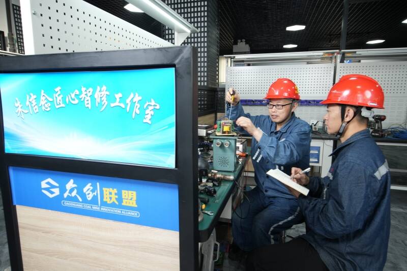 模拟洗煤工艺流程的智能化“魔屏”、智能化设备模型、液压、气动PLC实验台……位于洗煤厂的“启智创客”工作室是职工学习交流、技术攻关、创新创效的另一个“筑梦空间”。