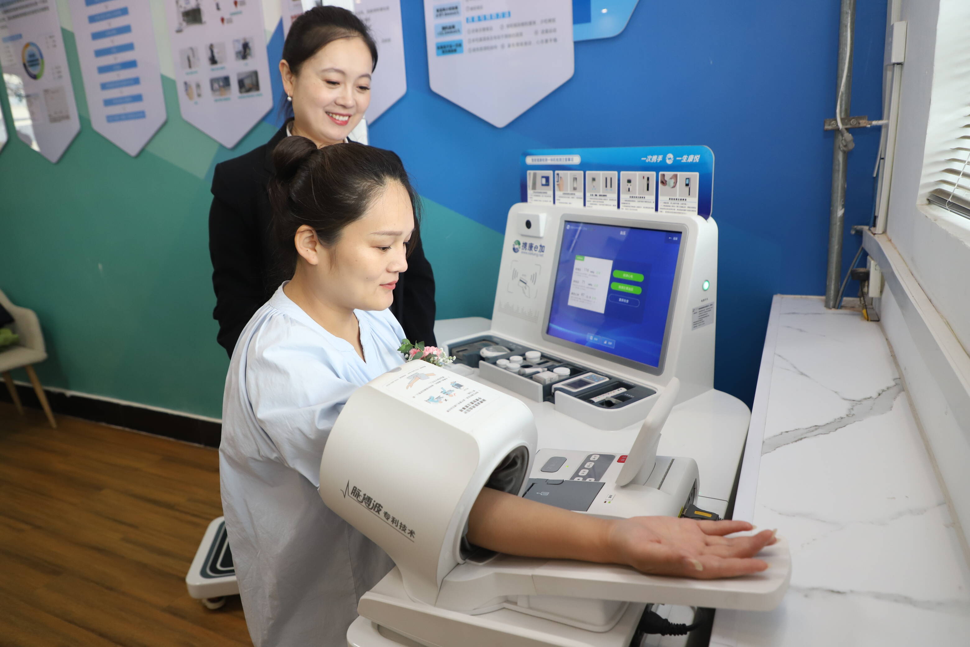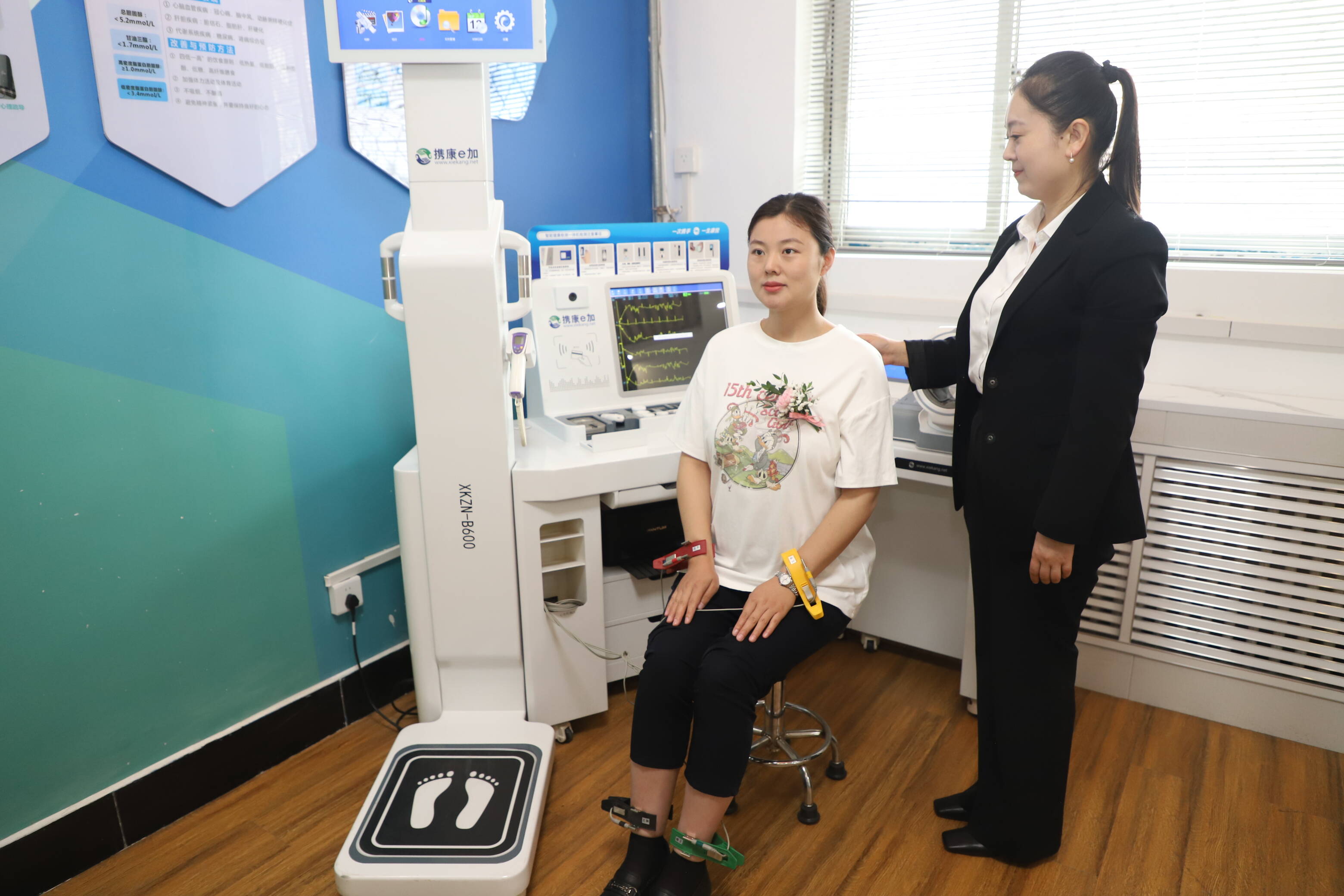 刚讲完“孕期营养雷区”,王乔媛立马带着助理团开启 “健康小屋”特别行动。血压仪、体重秤、心电图齐上阵,为准妈妈定制 VIP级体检套餐, “高压120/80,宝宝夸你是超人妈妈!” “血糖有点高哦!要注意控糖咯!”工作人员还贴心送上体检报告解读,连家属没陪产的“小委屈”都被温柔疏导。
