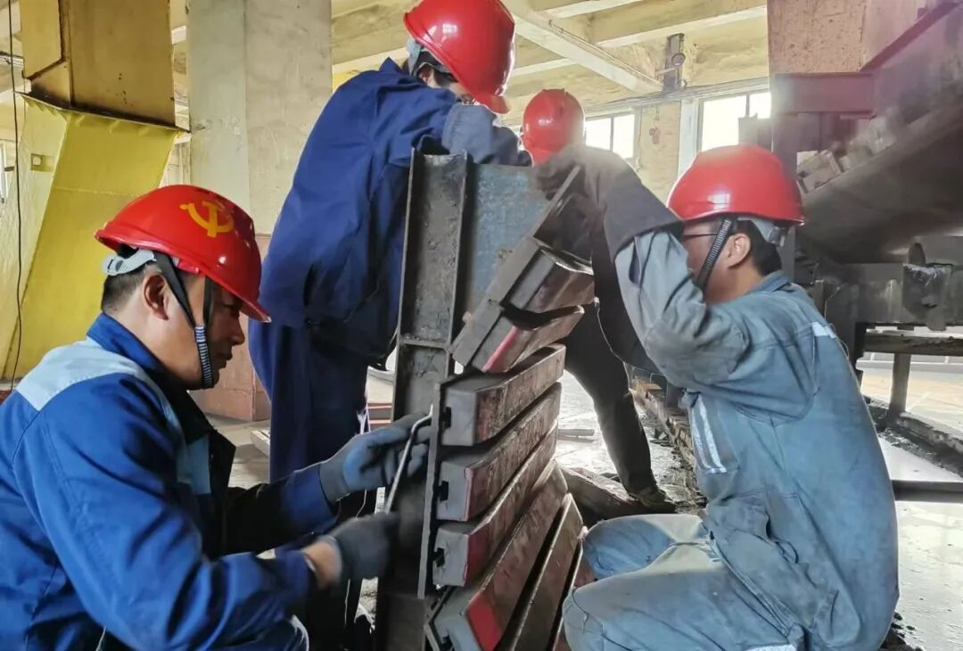 车间里,焊花闪烁。党员突击队的队员贾秉玉带着徒弟正焊接刮板钢,他手里拿着耐磨焊条:“这焊条得选和刮板钢匹配的材质,分段焊才不会变形,焊完再打磨平整,跟新的一样。”
