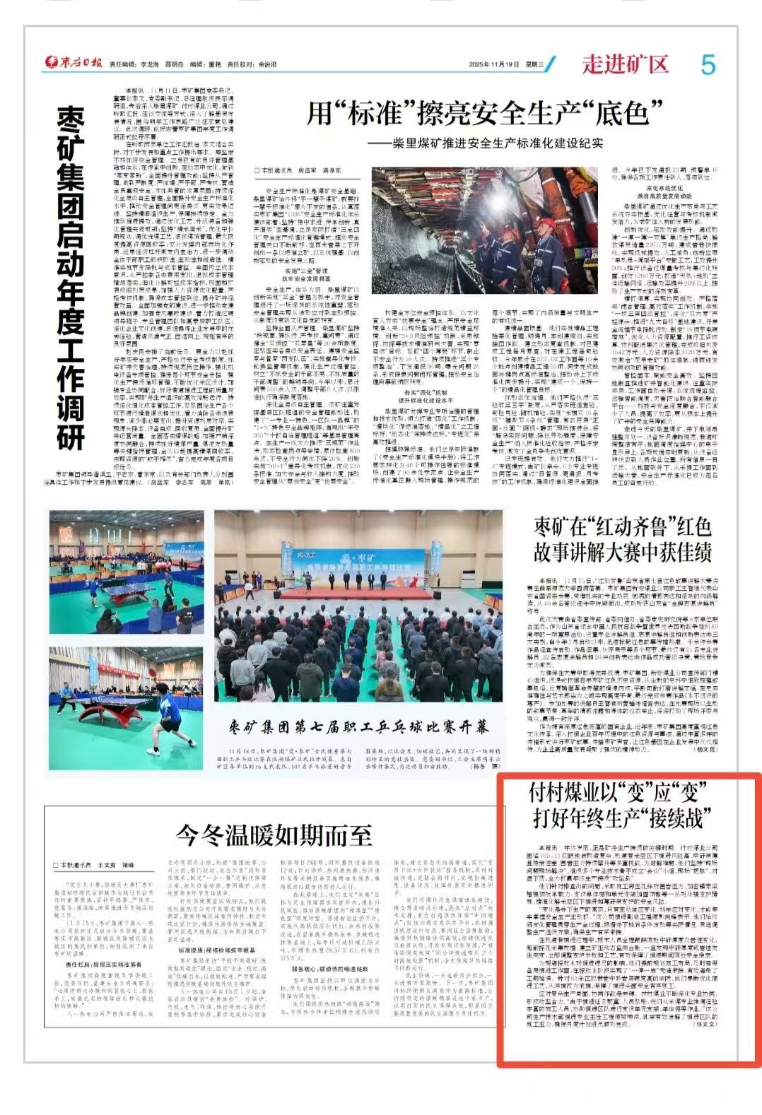 【枣庄日报】付村煤业以“变”应“变”打好年终生产“接续战”