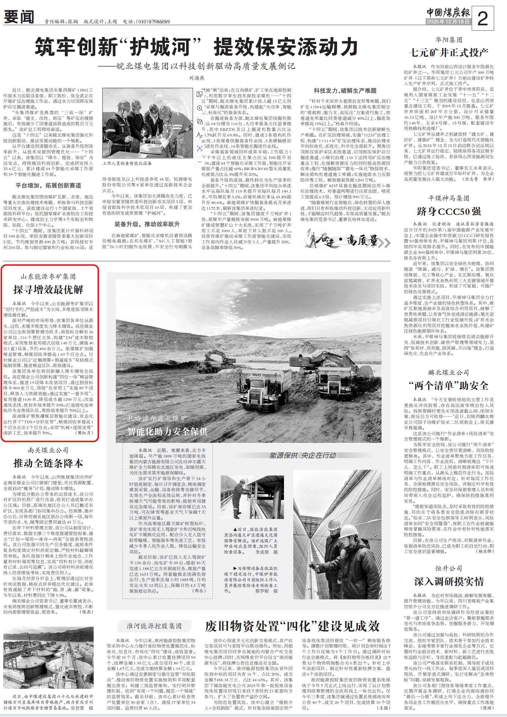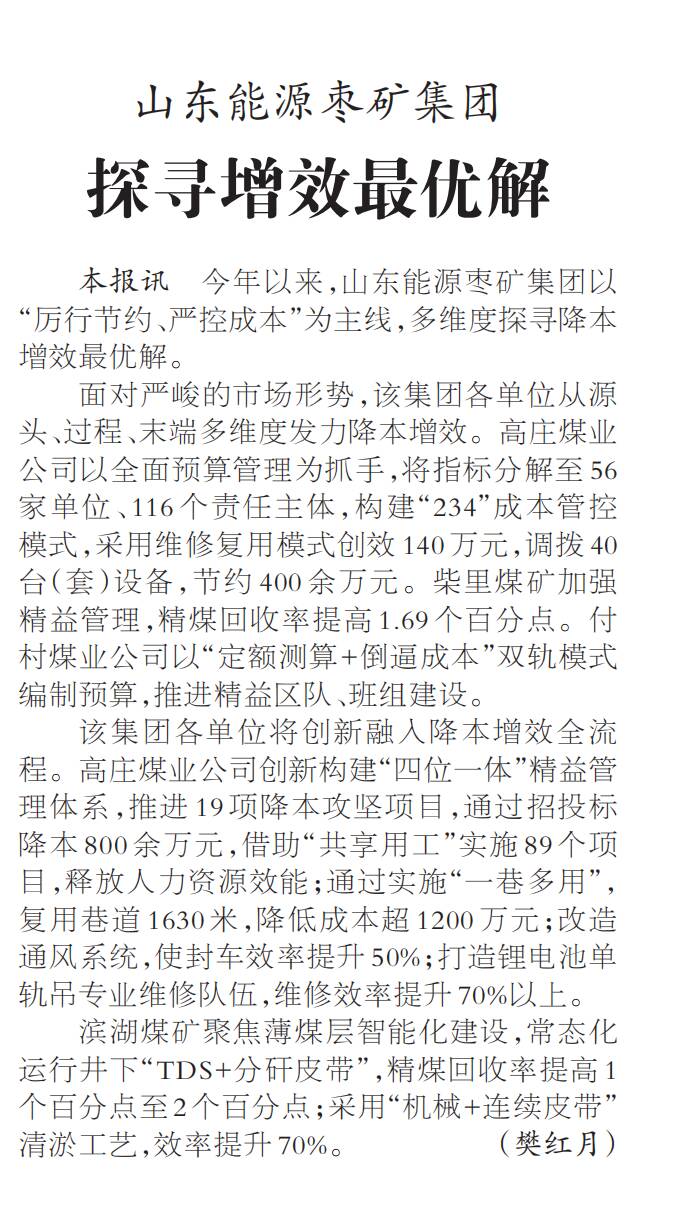 【中国煤炭报】山东能源枣矿集团 探寻增效最优解