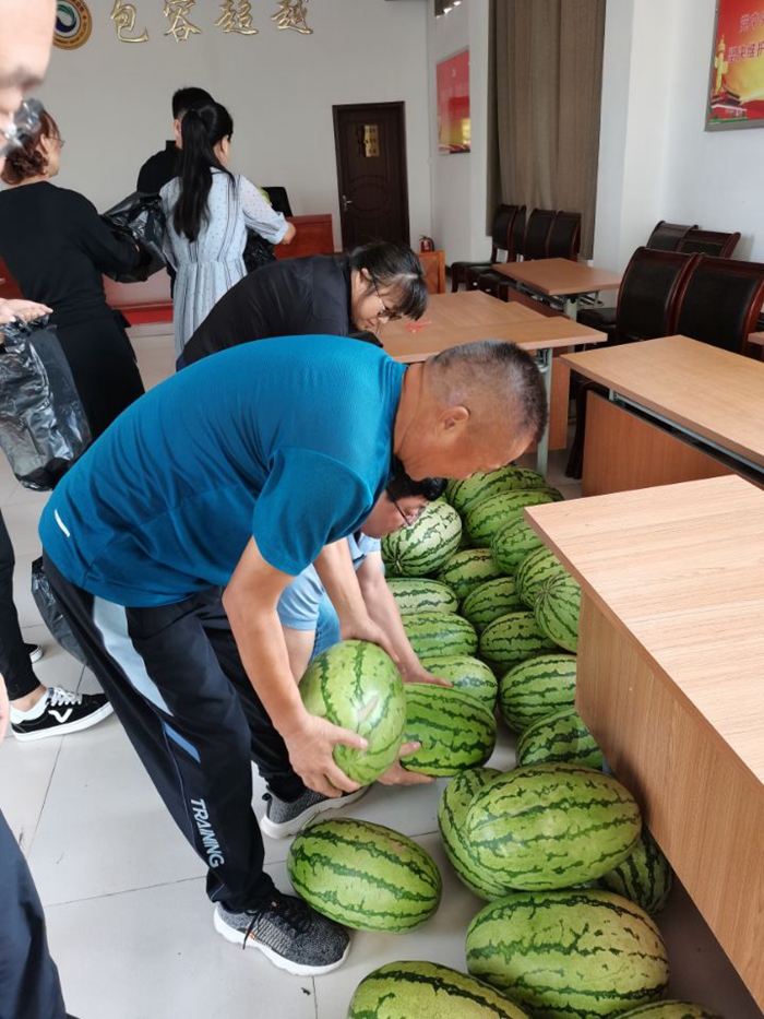 进入夏季高温时节,气候日益炎热,为做好防暑降温工作,确保物资公司职工安全度夏,近日,物资公司本着以人为本,关爱职工身心健康的原则,对一线职工普及防暑降温知识,并贴心地为他们准备了西瓜、藿香正气水等防暑降温物品,用真心换真情,传递温暖正能量。(刘柏岑)