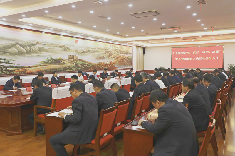 10月12日,七五煤业公司在调度楼二楼会议室召开“责任、诚信、品德”安全主题教育实践活动动员会。