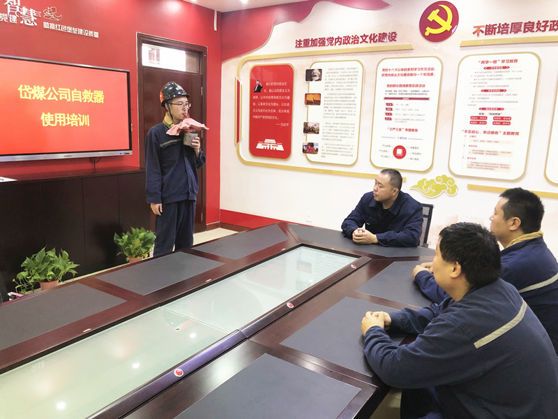 他们组织培训人员深入各区队、班组,向职工详细讲解了ZYX45隔绝式压缩氧自救器的构造、原理、日常维护、正确佩戴方式及注意事项等内容,现场演示了自救器的正确佩戴方法和使用步骤,参训职工踊跃上台进行实操演示,通过对自救器拆、打、含、夹逐项操作,掌握实际使用技能。
