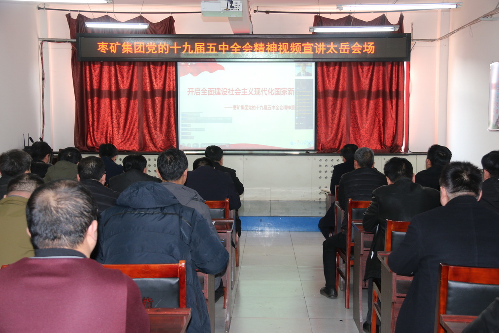 12月18日下午,根据枣矿集团党委的统一安排,太岳煤矿集中组织收看十九届五中全会精神宣讲会。宣讲由枣矿党校教务处讲师、政治学硕士封立菀通过“钉钉”软件进行视频宣讲。党委书记李玉华、矿长马洪俭,其他班子成员、各专业副总师、各支部书记、各科室负责人、基层区队区长、技术人员约60余人共同观看了宣讲会。