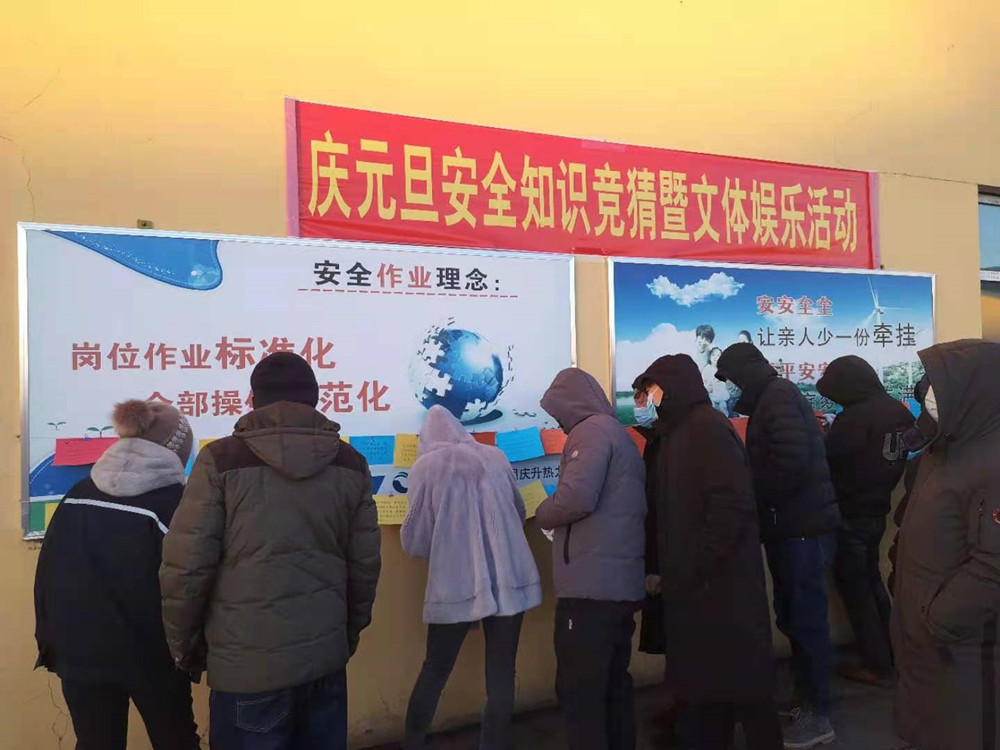 2021年1月1日,在辞旧迎新之际,庆升公司分别在煤矿、热力公司举办了“庆元旦、保安全”安全知识竞赛答题活动,用安全知识浓厚节日氛围,拉开新一年安全生产帷幕。