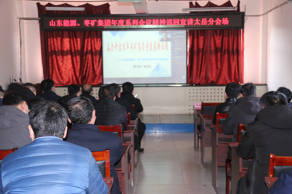 1月27日下午,山西太岳煤矿在培训教室集中观看山东能源、枣矿集团年度系列会议精神宣讲。党委书记李玉华、班子成员和科室、区队管理人员约60人参加。