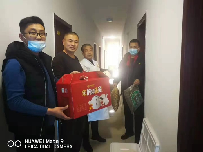 图为后勤中心工会为就地过年、坚守在大恒煤业后勤服务岗位的员工送去节日慰问品