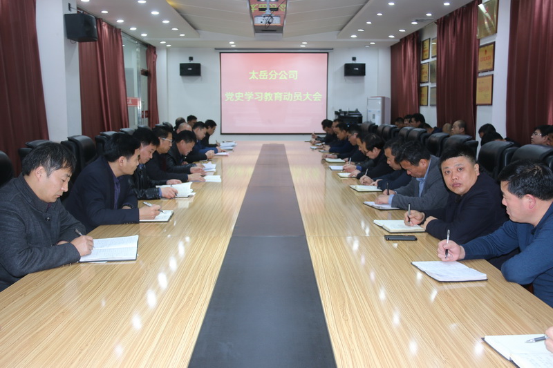 3月19日上午,太岳分公司在调度会议室召开党史学习教育动员大会,深入学习领会习近平总书记党史学习教育动员大会重要讲话精神,认真传达贯彻能源集团和枣矿集团党史学习教育动员大会精神,结合太岳分公司实际进行动员部署。党委书记李玉华作动员讲话,矿其他班子成员、各副总师、机关部门负责人、各工区区长、党支部书记参加会议。