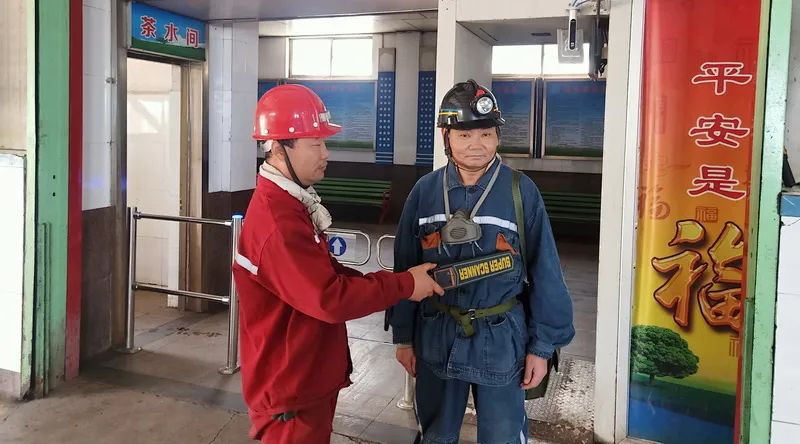 “职工师傅们,请自觉接受检查,注意脚下安全,排队有序乘坐罐笼下井。”在该矿副井口,时常能听到信号把勾工传来的安全提示,并对每一名入井职工进行仔细检查。
