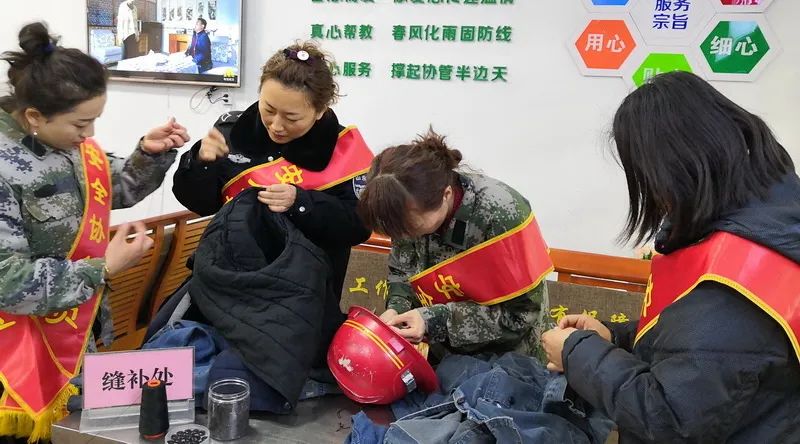 “衣服缝好啦!快穿上试试”……在矿井爱心驿站,女工协管员正为一线矿工缝补工作服。只见她们双手娴熟地穿针引线、剪裁、缝补、钉扣、整理一气呵成,一针一线将安全祝福缝补进每一件工作服,使浓浓的亲情沁入到安全工作之中,并嘱咐取衣服的职工时刻注意安全,让职工倍感温馨,在脉脉温情中筑牢安全生产防线。