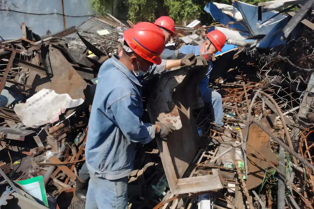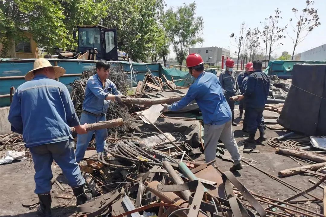 在“淘宝”现场,大家或单独作业,或两两配合,从废铁堆里挑拣出喷雾架、H架、电气开关、高压胶管等多种能够回收复用的材料,并由专门工作人员现场估算价值并登记造册。