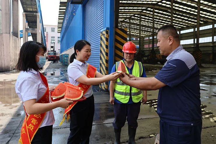 她们还深入洗煤厂、维修车间、充填工区等地面班组岗点,为坚守岗位的职工送去西瓜、矿泉水、茉莉花茶、毛巾等,将夏日清凉送到职工心坎上。职工们纷纷表示,大热天,吃块西瓜,瞬间感觉凉爽多了,擦擦汗,加油干!